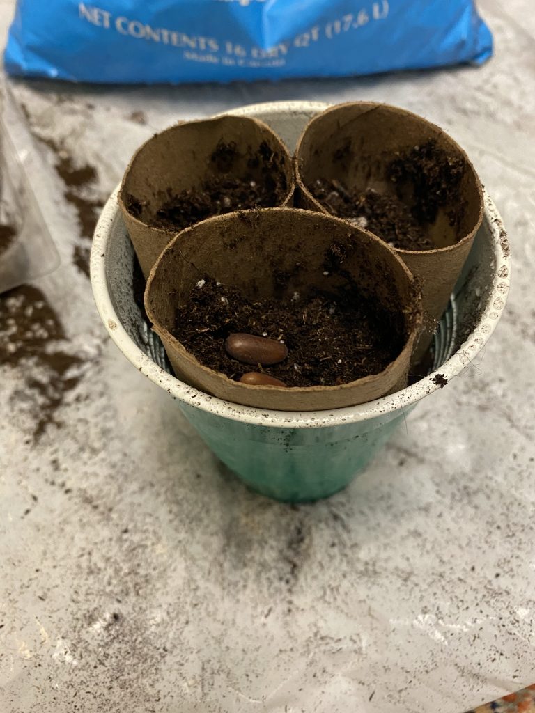 Toilet paper rolls can be used as individual pods inside a plastic cup for beans, they can be easily transplanted without disturbing the roots once the seedlings are ready.