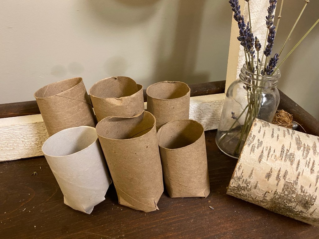 Upcycle empty toilet paper rolls into seedling pots with a few simple steps.